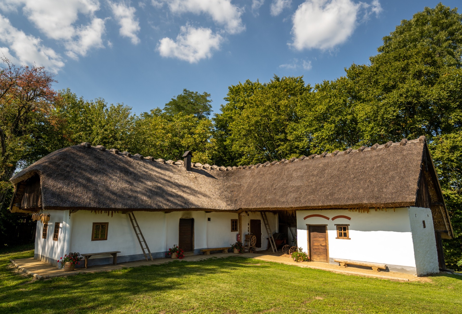In preden se ustrašite, da boste kuhali v črni kuhinji ter uporabljali stranišče, naj vas rešimo skrbi: gre za novodobno panonsko arhitekturo z vsem udobjem, ki ga imate doma. Hkrati pa seveda s pristnim romantičnim šarmom in toplino. Krite so namreč s trstiko, ometane z glino, za prijetno bivanje pa v notranjosti sledi obilica lesa v avtentičnem prekmurskem slogu.