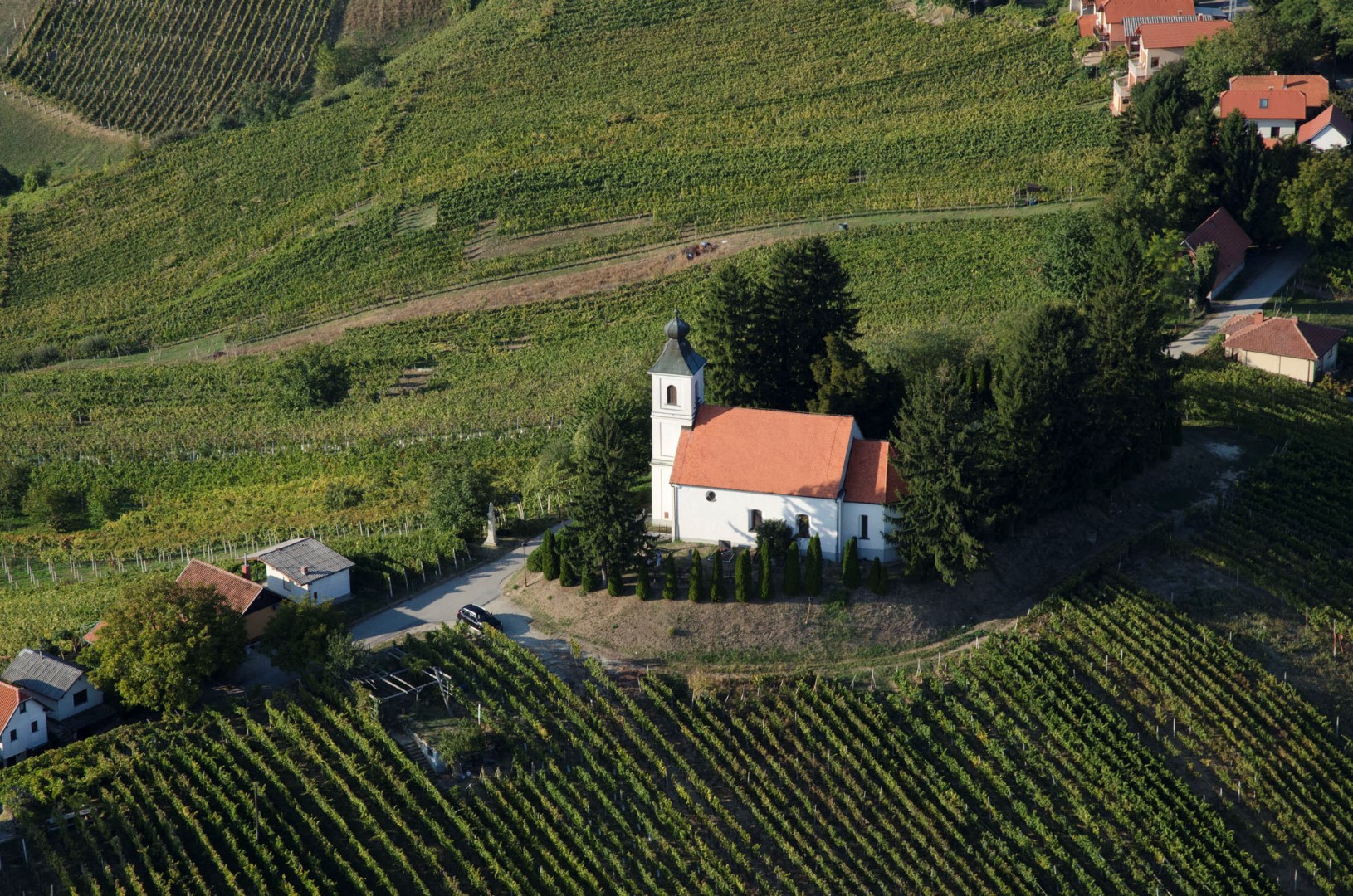 Kaple Nejsvětější Trojice, ochránkyně Lendavy, je obklopena malebnými vinicemi a jako hrdá bílá stráž bdí nad městem pod nimi.