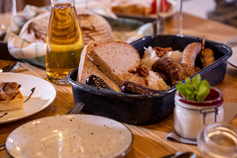 Die Schönheit von Pomurje, wo Weinberge mit der Ebene und Modernität mit Tradition verbunden sind, hat uns zu unserem Angebot inspiriert. Dialekt, Musik, Tanz und Kulinarik sind hier etwas Besonderes und Einzigartiges. Unser Ansatz basiert auf dem Konzept von Lebensmitteln, das durch drei miteinander verbundene Prinzipien definiert wird: "GUT" Lebensmittel müssen hochwertig, lecker und gesund sein. „SAUBER“ Zutaten müssen so hergestellt werden, dass sie die Umwelt nicht schädigen. „FAIR“ müssen die Preise für den Verbraucher verfügbar sein und gleichzeitig eine gerechte Zahlung an die Lieferanten sichergestellt werden. Mit den Besuch unseres Restaurants möchten wir, das Sie unsere Lieferanten vor Ort kennenlernen, die mit Fleiß, Kreativität, Liebe zu ihrem Heimatland und Respekt für ihre Vorfahren einzigartige Geschichten schreiben und hochwertige Produkte anbieten. Neben traditionellen Gerichten werden wir auch neue Gerichte gemäß den neuesten Trends entwickeln und kulinarische Geschichten kreieren, die von lokalen Zutaten, Tradition und Exzellenz inspiriert werden. Das erste, was der Gast in Pomurje erlebt, ist die Gastfreundschaft und die Güte von Pomurje.