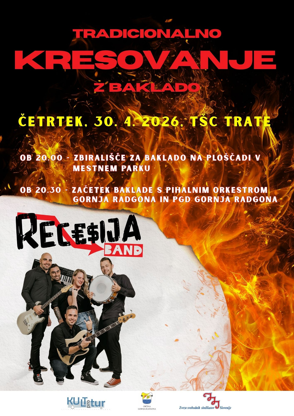Ob 20. 30 bomo v spremstvu Pihalnega orkestra Gornja Radgona in PGD Gornja Radgona s prižganimi baklami odkorakali na TŠC Trate, kjer bodo za dobro vzdušje, zraven kulinarične ponudbe, poskrbeli tudi glasbeniki. Letos nas bodo dolgo v noč zabavali RECESIJA BAND!
