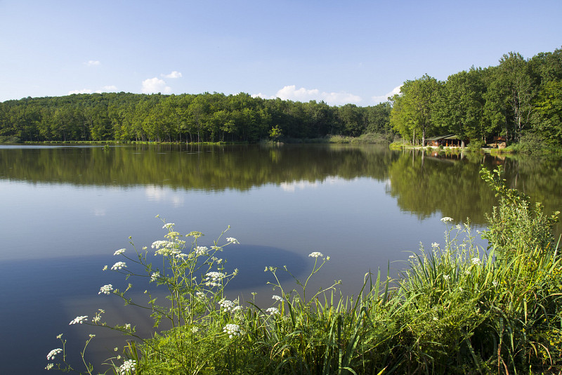 The lake is surrounded by a mixed forest of hornbeams, beeches, sweet chestnuts, and scots pines. Due to its botanical, zoological, and ecosystem-features it stands under protection.