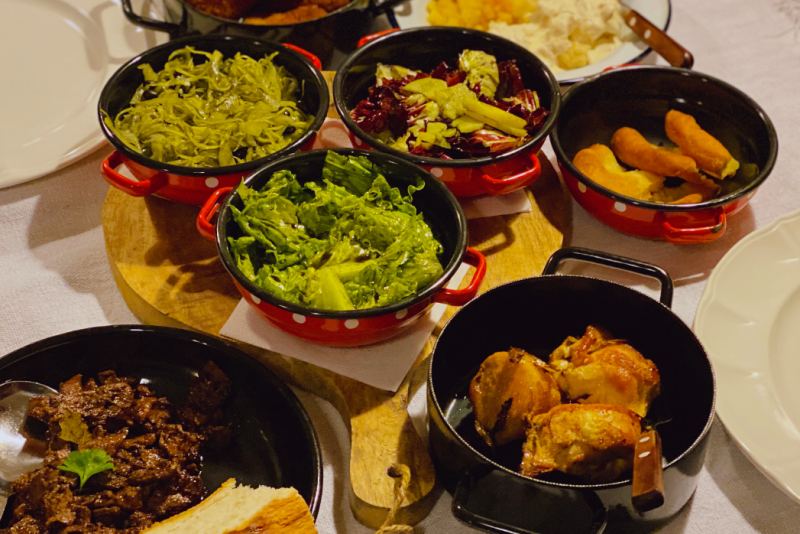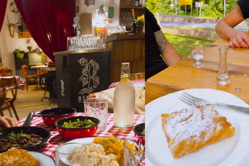 It all began four decades ago and after some stormy times a new, fresh and strong wind caught the inn with its culinary sails. The dining room and the shady terrace are perfect to quench the guest's thirst and satisfy their hunger as they enjoy the dishes of our mothers and grandmothers, made from the ingredients of the nearby farms. Travellers, coming to us on foot or by bike, motorbike or car, can pamper their taste buds with distinctive Prekmurian dishes. If hunger strikes, there are the homemade smoked cold cuts with homemade boiled sausage, distinctive »dödöli« and buckwheat »zlevanka«. Those gourmets among you can indulge in “Goričko chicken”, roast pork, ribs, and delicious wine and garlic dishes. What is special about our offer is baked blood. However, we did not forget about our vintage wine from the nearby vineyards as well as our homemade juices. Our offer also includes teas and syrups from the organic farm “Korenika”. In the end, you can quench your thirst with the schnapps from the neighbouring Selo.