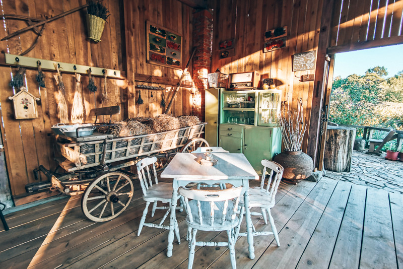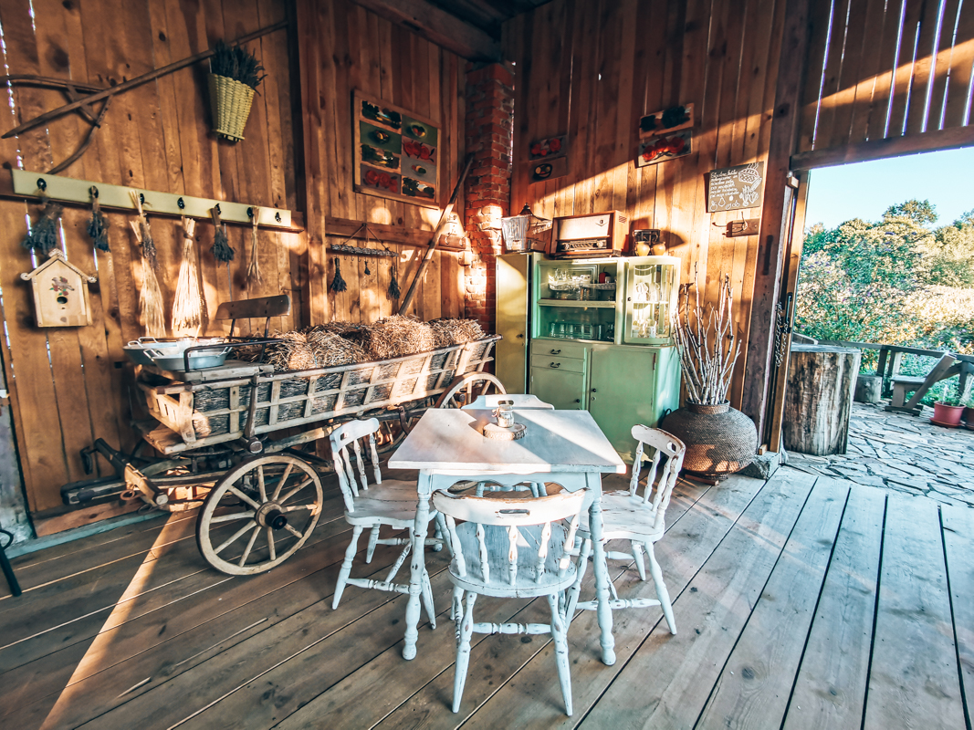 Prikupno urejen senik s kavo iz džezve in sladicami po babičinih receptih.