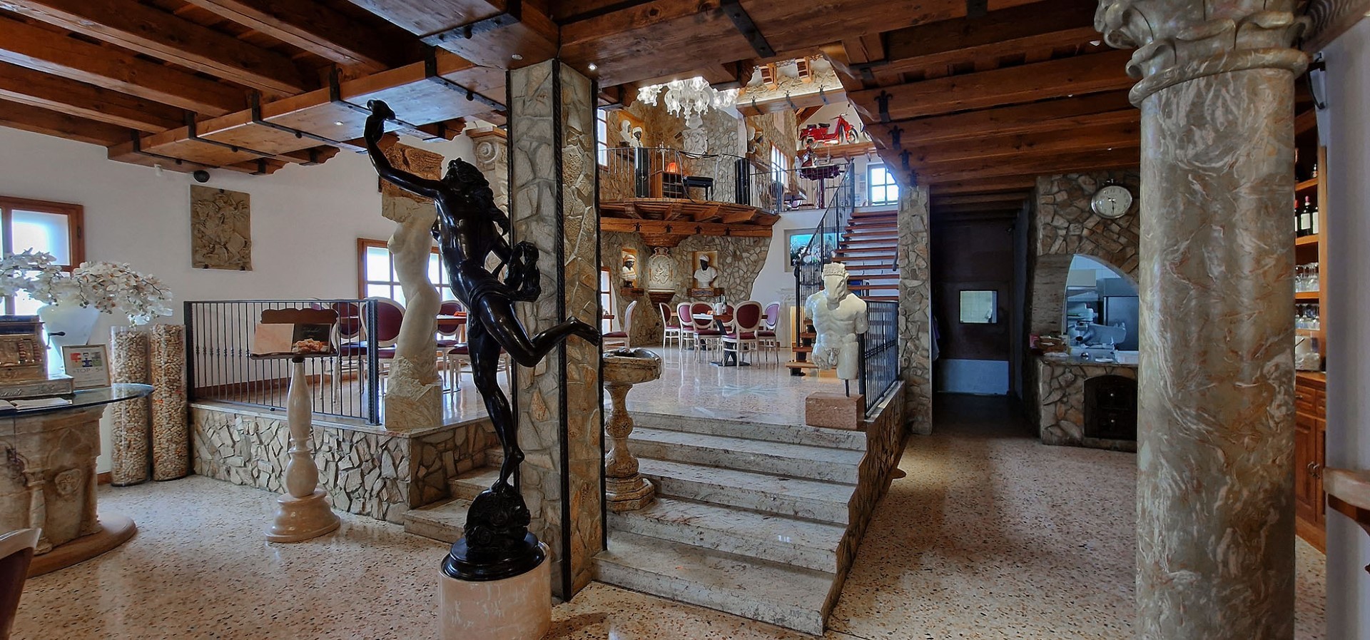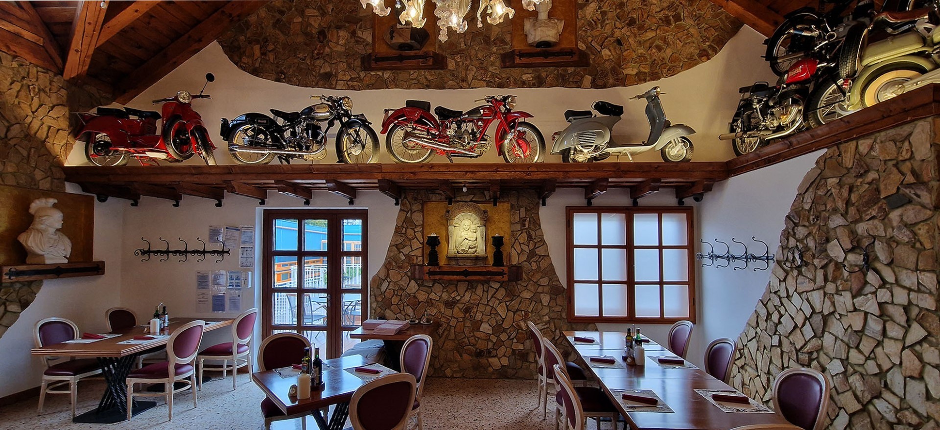 Ob odlični italijanski kulinariki lahko v restavraciji Bella Venezia uživate ob pogledu na razstavljene kipe, slike, skulpture in enkratno zbirko starih motorjev, s katerimi obisk restavracije zavije v smer enkratnega doživetja.