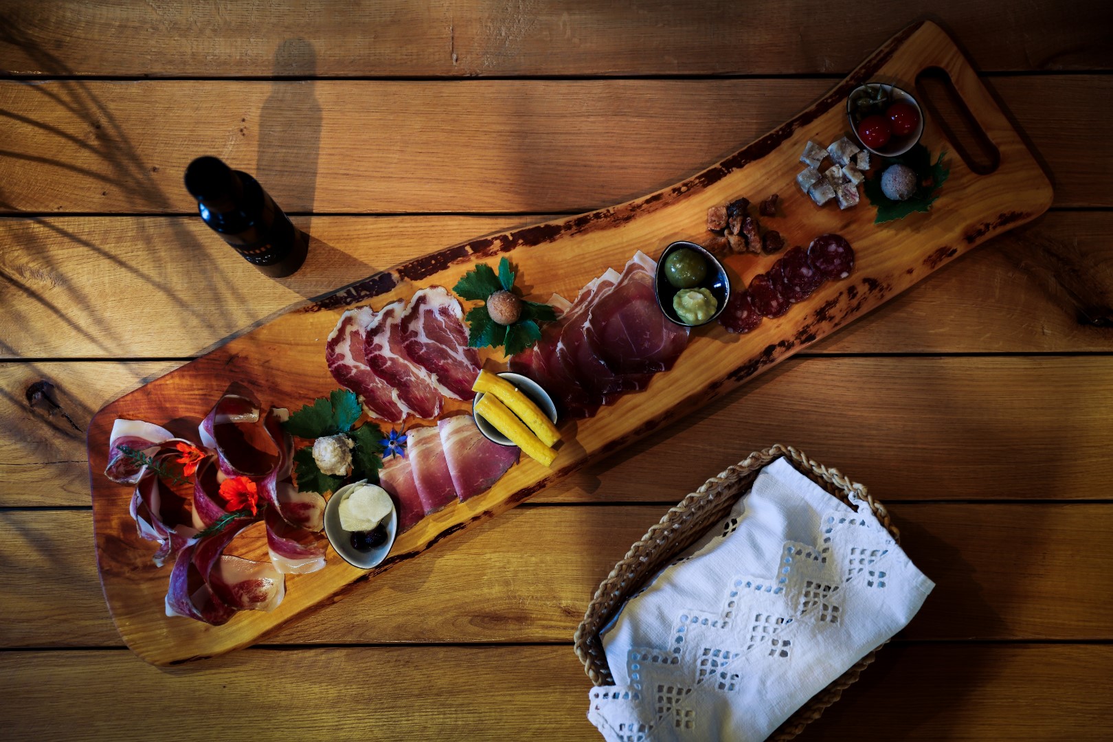 Tradicionalne prekmurske jedi s pogledom na Plečnikovo cerkev.