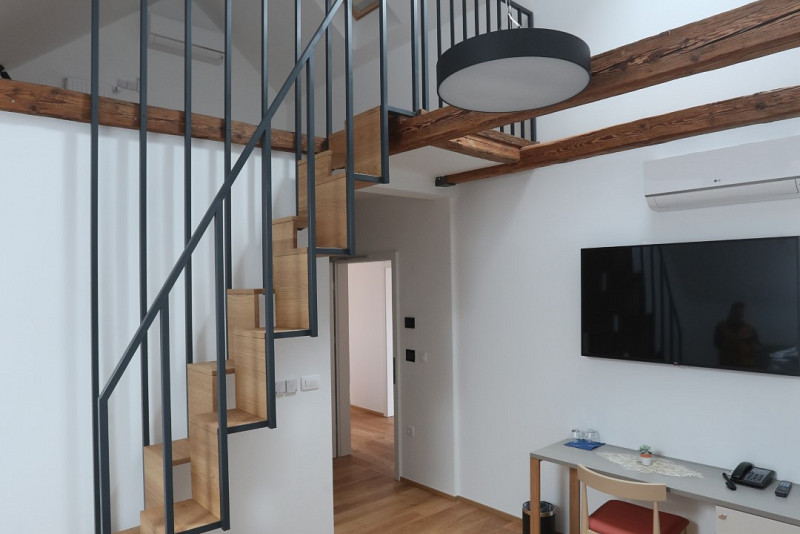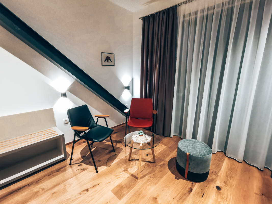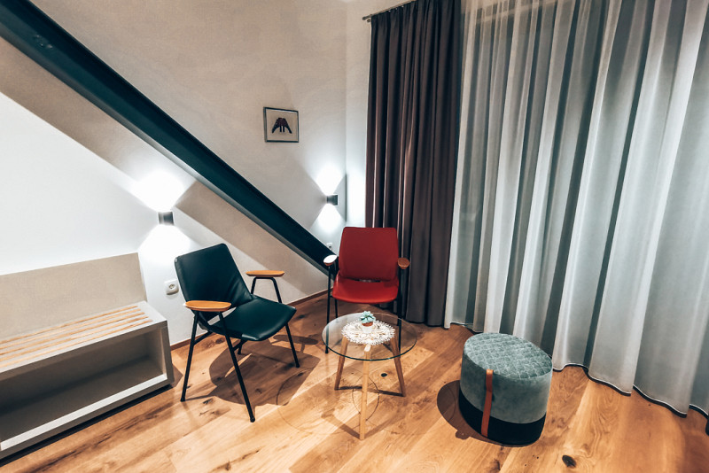 Med bivanjem boste lahko začutili več kot stoletno zgodovino stavbe, saj so pri gradnji hotela izhajali iz koncepta meščanske hiše. Sobe so zato prijetno velike, ohranjeni pa so tudi izbrani elementi, kot so podstrešni tramovi.