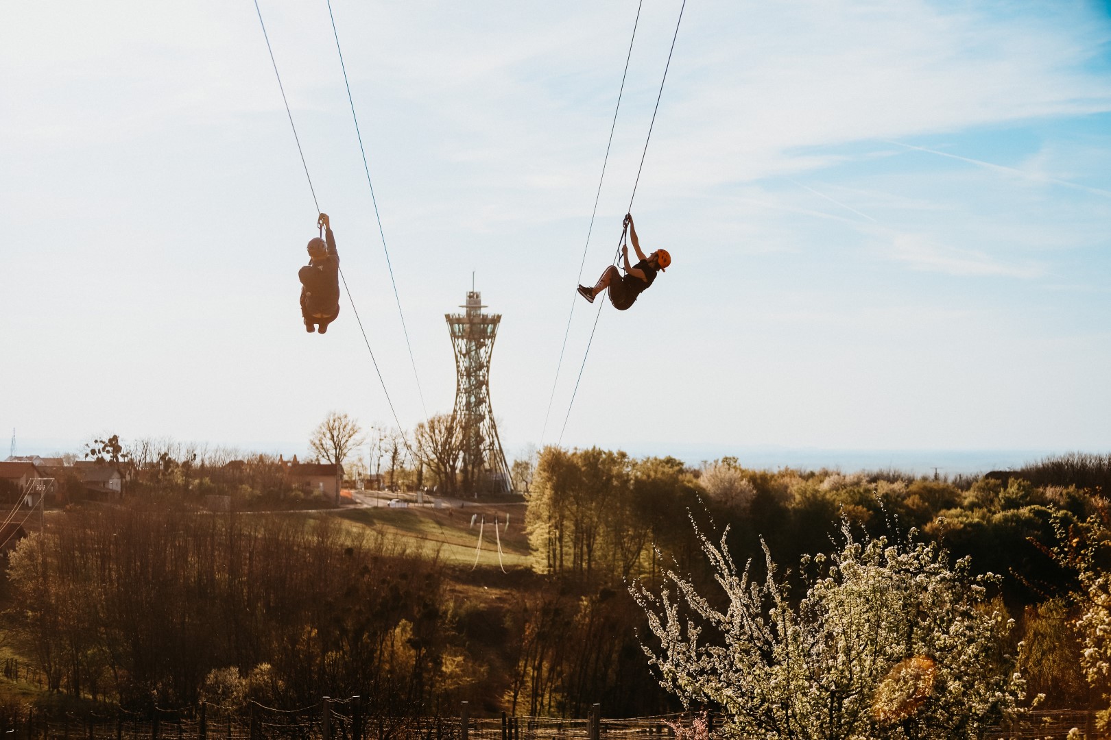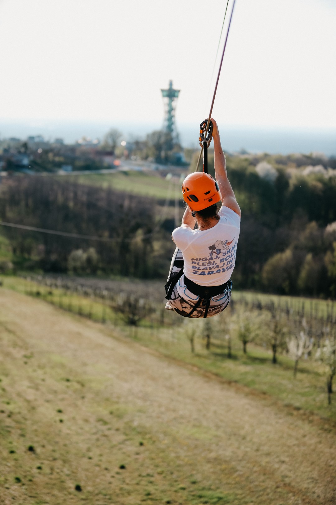 Prvi spust po jekleni vrvi v Pomurju.